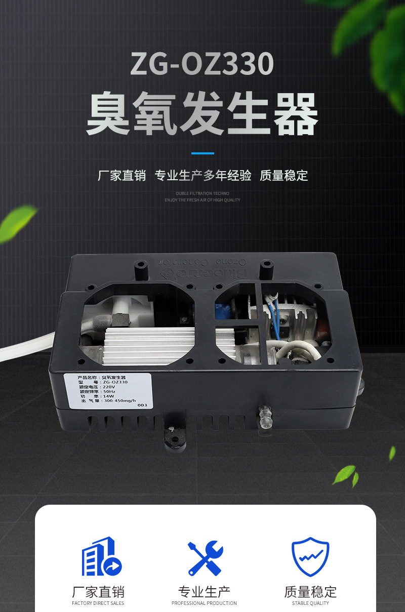 ZG-OZ330小型臭氧發(fā)生器采用最新的臭氧核心放電體,包括臭氧發(fā)生管、臭氧驅(qū)動(dòng)電路和氣泵的一體化設(shè)計(jì),只要接上電源即可提供高效穩(wěn)定的臭氧輸出,安裝使用維護(hù)方便。