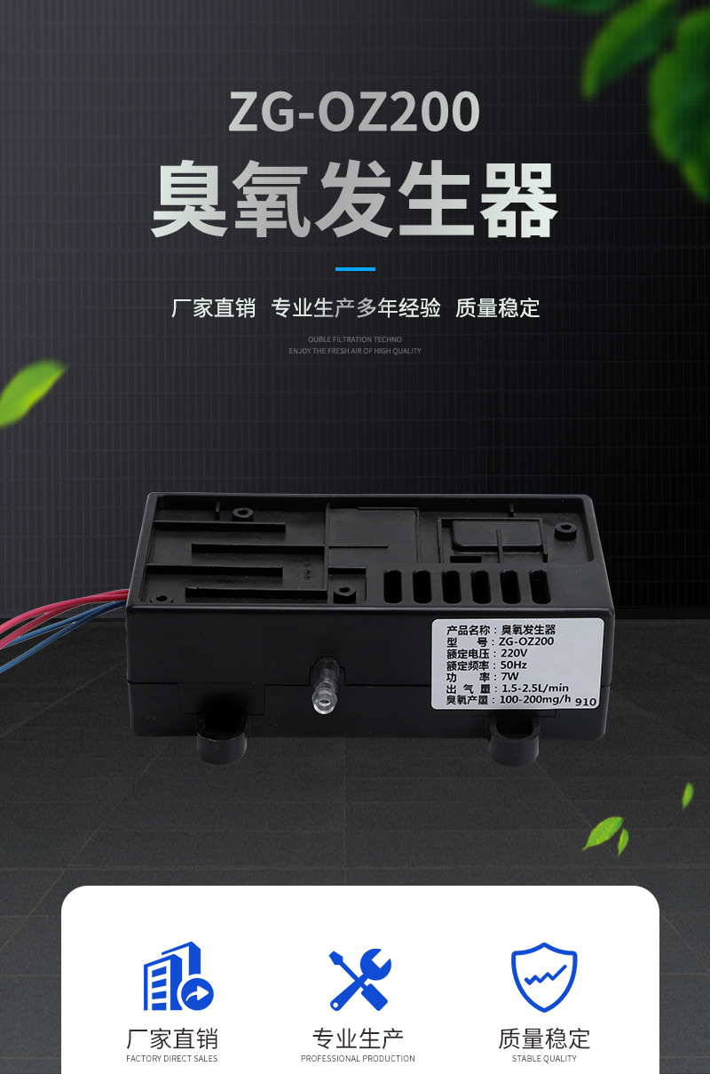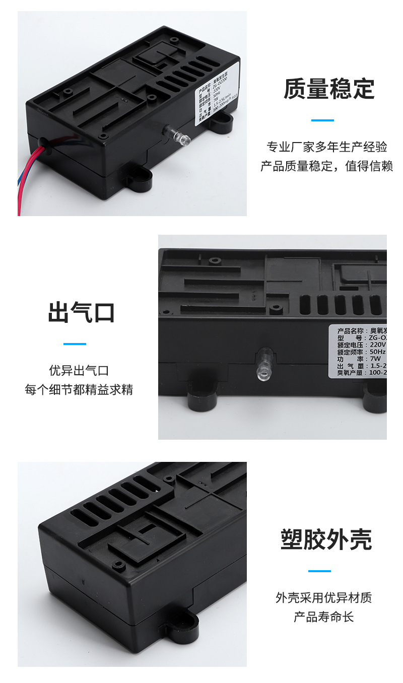 ?一體化整合了臭氧驅動電路、臭氧發(fā)生管、氣泵,結構緊湊、設計合理、統(tǒng)配性強